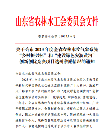 伟德国际1949喜获2023年度全省农林水牧气象系统工会创新创优竞赛项目选树激励四项荣誉