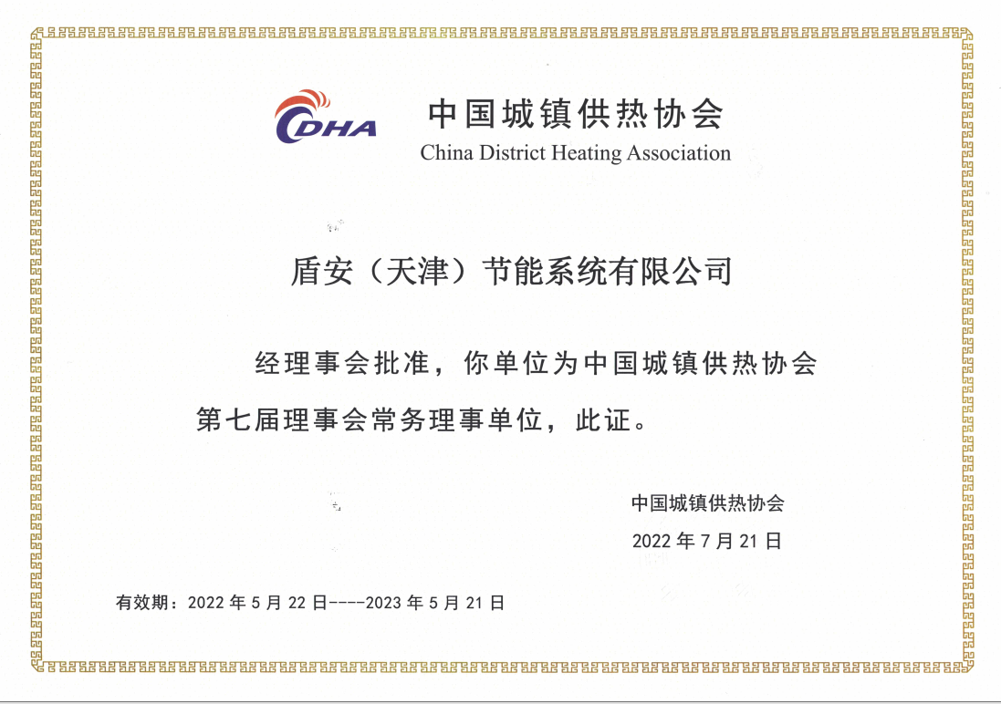 水发盾安(天津)节能系统有限公司当选中国城镇供热协会第七届理事会常务理事单位