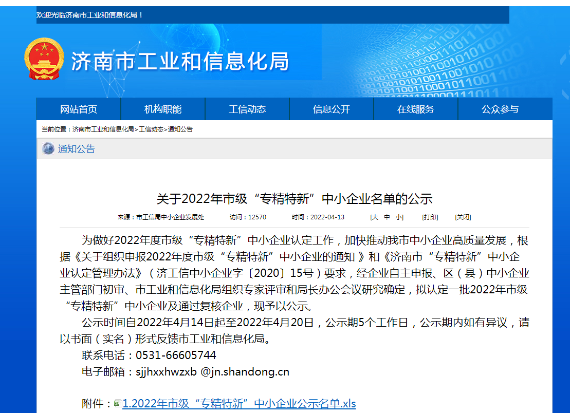 4月20日,山东奥翔电力工程设计咨询有限公司通过济南市工业和信息化局2022年市级“专精特新”中小企业公示期,成功入选2022年市级“专精特新”中小企业。水发奥翔通过“专精特新”中小企业的认定,标志着公司在创新技术水平、经营管理能力及品牌影响力等方面获得了社会认可。这也是继获得国家级高新技术企业认证后,公司获得的又一殊荣,正式实现“双认证”。
