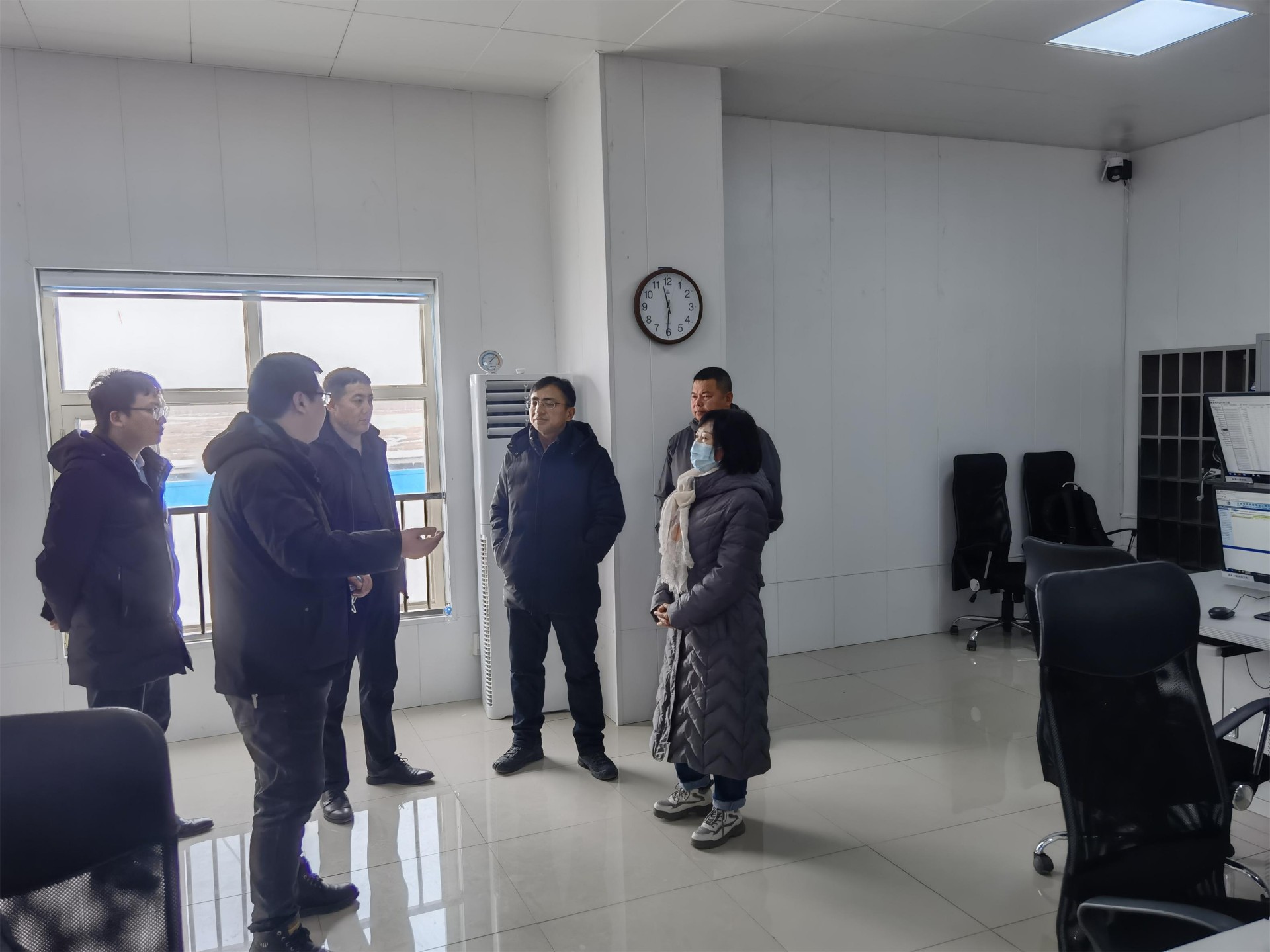 3月4日,吉林省白城市能源局副局长田秀华一行莅临水发龙海风电场视察调研,通榆县能源局副局长王海波陪同。