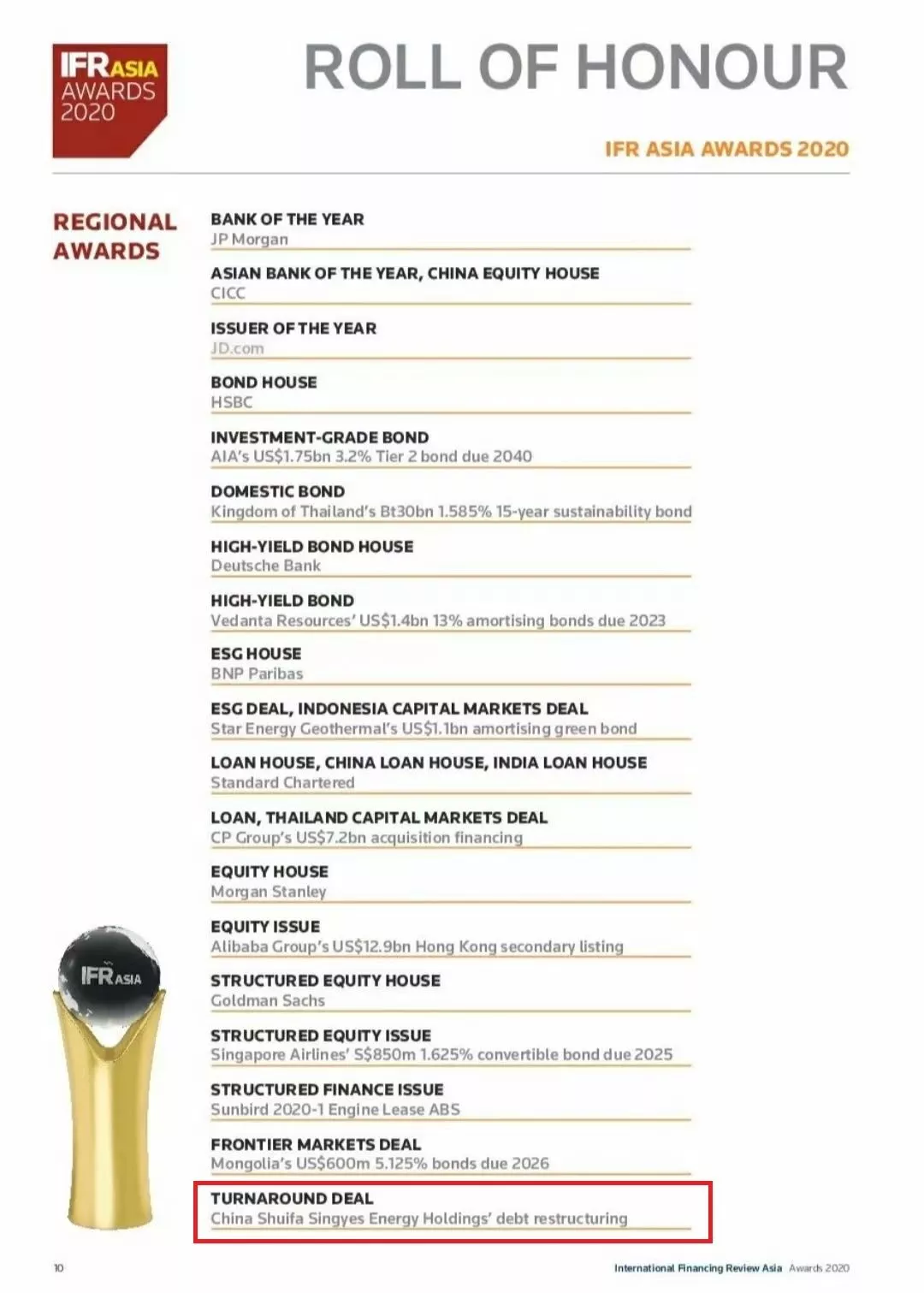水发兴业能源获IFR 亚太2020 Turnaround Deal大奖